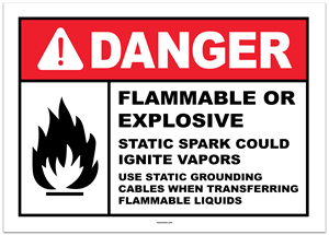 Danger Flammable or Explosive Static Spark Could Ignite Vapors Sticker