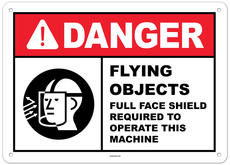 Danger Flying Objects Full Face Shield Required to Operate This Machine Sign