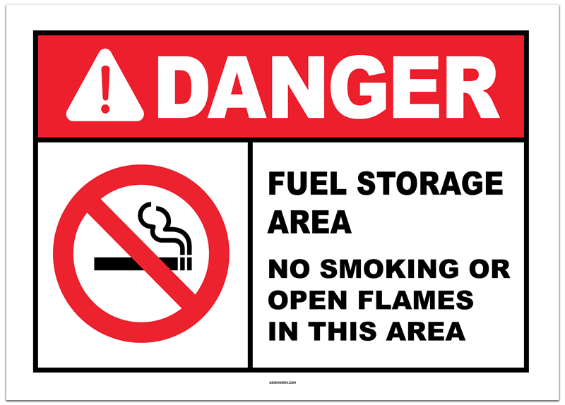 Danger Fuel Storage Area No Smoking or Open Flames Sticker