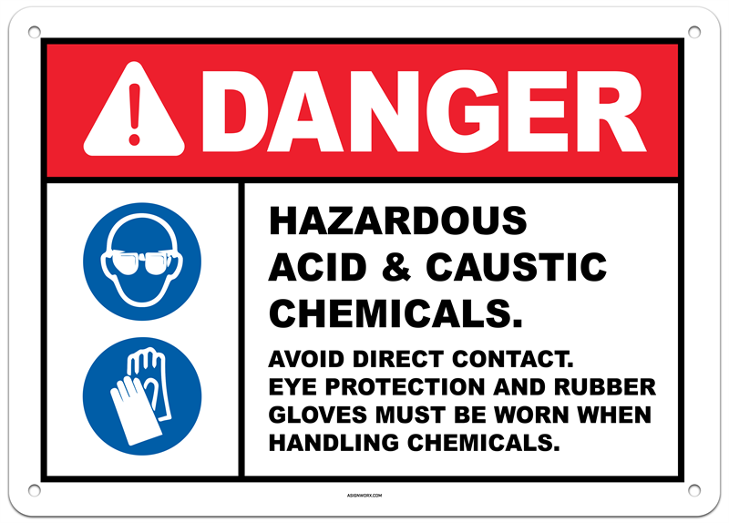 Danger Hazardous Acid & Caustic Chemicals Sign
