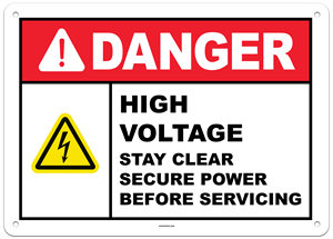 Danger High Voltage Stay Clear Secure Power Before Servicing Sign 2