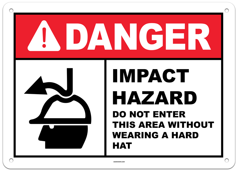 Danger Impact Hazard Do Not Enter Area Without a Hard Hat Sign