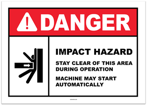 Danger Impact Hazard Stay Clear of this Area Machine May Start Automatically Sticker