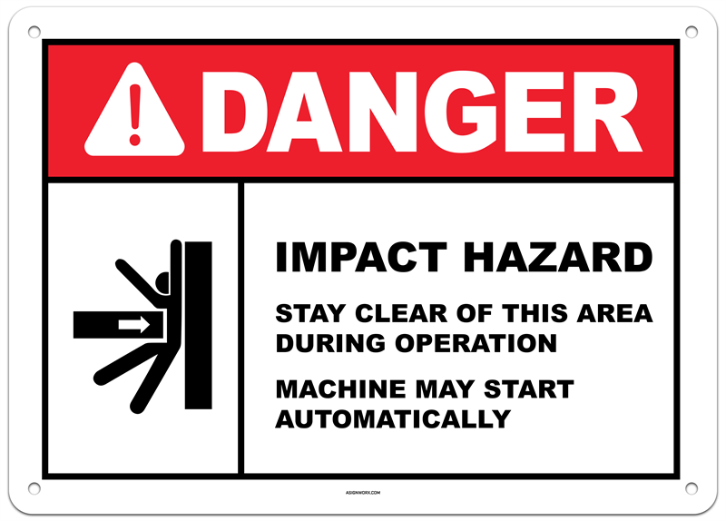 Danger Impact Hazard Stay Clear of this Area Machine May Start Automatically Sign