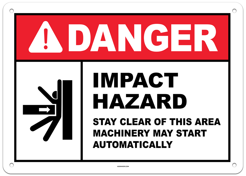 Danger Impact Hazard Stay Clear of this Area Machinery May Start Automatically Sticker