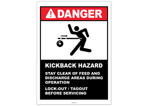 Danger Kickback Hazard Stay Clear of Feed and Discharge Areas During Operation Sticker 3