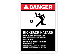 Danger Kickback Hazard Stay Clear of Feed and Discharge Areas During Operation Set Hold Down Height Correctly Sign 4