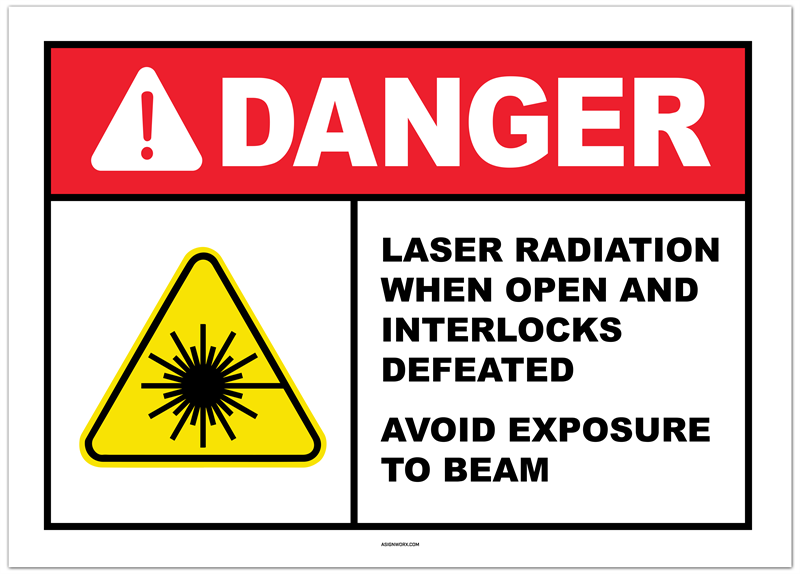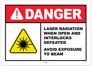 Danger Laser Radiation When Open and Interlocks Defeated Avoid Exposure to Beam Sticker