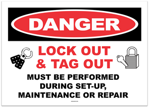 Danger Lock Out & Tag Out Must Be Performed During Set-Up Maintenance or Repair Sticker