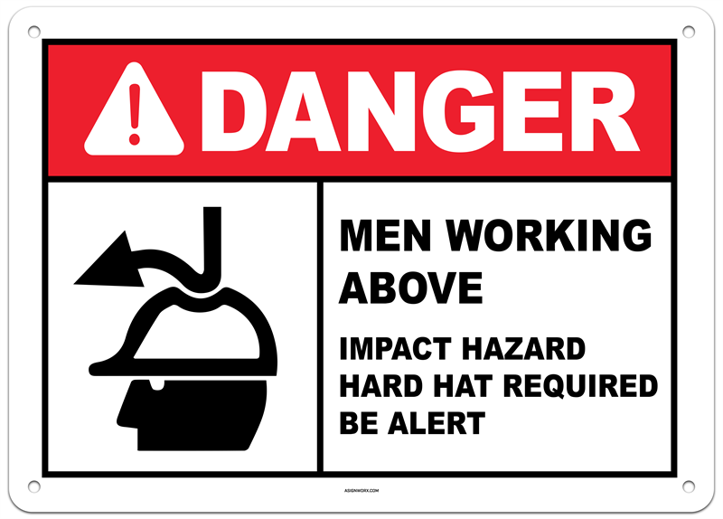 Danger Men Working Above Impact Hazard Hard Hat Required Sign