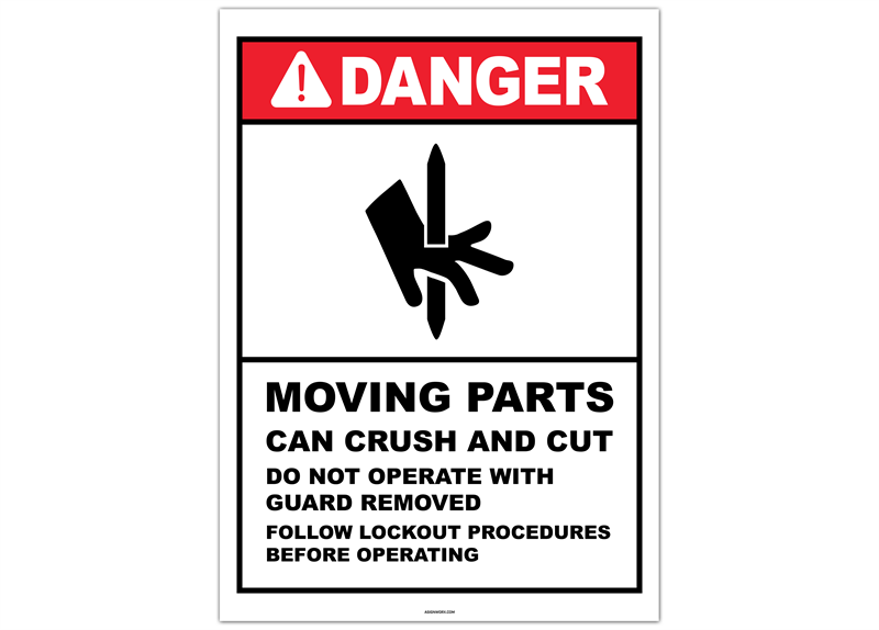 Danger Moving Parts Can Crush or Cut Do Not Operate With Guard Removed Sticker 4