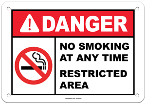 Danger No Smoking at Any Time - Restricted Area Sign