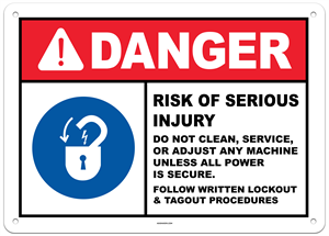 Danger Risk of Serious Injury Do Not Clean Service or Adjust Unless Power Secure Sign