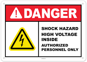 Danger Shock Hazard High Voltage Inside Authorized Personnel Only Sign