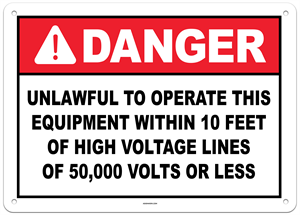 Danger Unlawful to Operate Equipment Within 10 Feet of High Voltage Lines Sign
