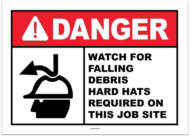 Danger Watch for Falling Debris Hard Hats Required on this Job Site Sticker
