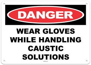 Danger Wear Gloves While Handling Caustic Solutions Sign