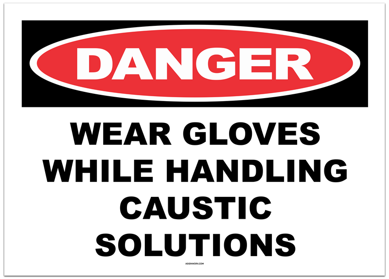 Danger Wear Gloves While Handling Caustic Solutions Sticker