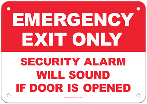 Emergency Exit Only Security Alarm Will Sound if Door is Opened Sign