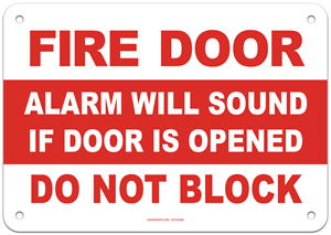 Fire Door Alarm Will Sound if Door is Opened Do Not Block Sign
