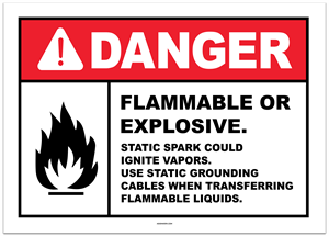 Flammable or Explosive. Static Spark Could Ignite Vapors Sticker