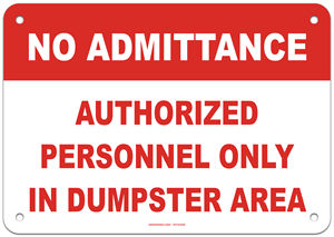 No Admittance Authorized Personnel Only in Dumpster Area Sign