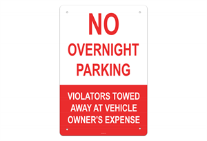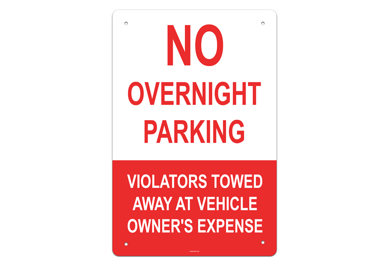 No Overnight Parking Violators Will Be Towed Away at Vehicle Owner's Expense Sign