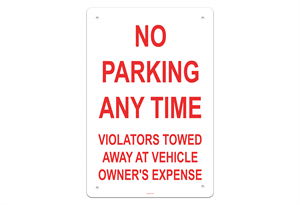 No Parking Any Time Violators Towed Away at Vehicle Owner's Expense Sign