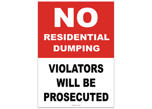 No Residential Dumping Violators Will Be Prosecuted Sticker