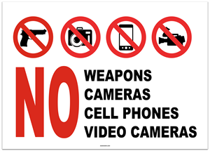 No Weapons Cameras Cell Phones Video Cameras Sticker