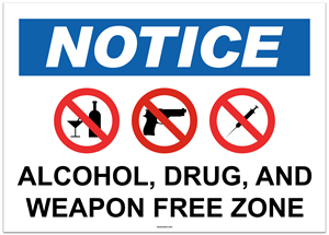 Notice Alcohol Drug and Weapon Free Zone Sticker