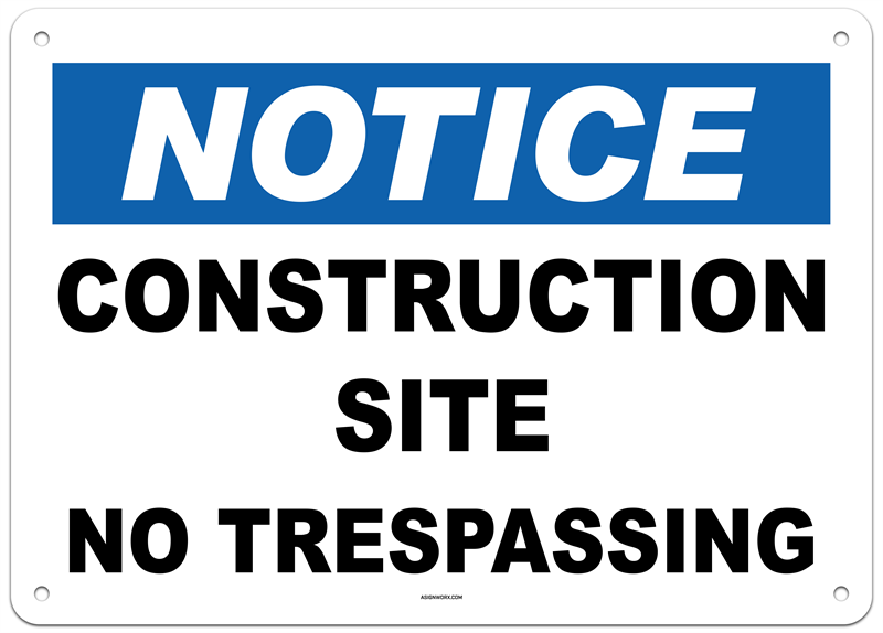 Notice Construction Site No Trespassing Sign