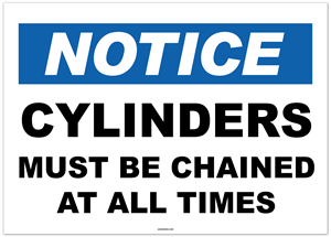 Notice Cylinders Must Be Chained At All Times Sticker