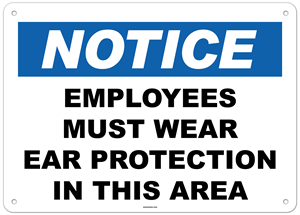 Notice Employees Must Wear Ear Protection In This Area Sign