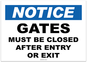 Notice Gates Must be Closed After Entry or Exit Sticker