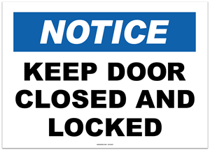 Notice Keep Door Closed and Locked Sticker
