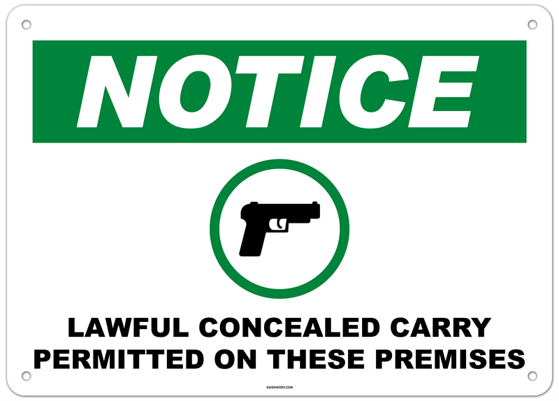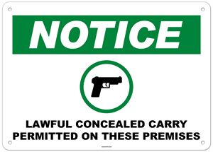 Notice Lawful Concealed Carry Permitted on these Premises Sign
