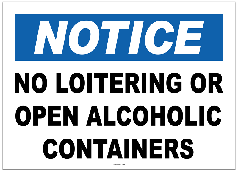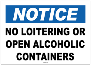 Notice No Loitering or Open Alcoholic Beverages Sticker