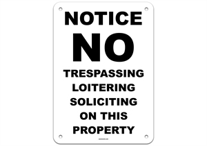 Notice No Trespassing Loitering Soliciting on this Property Sign 2