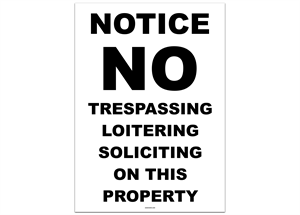Notice No Trespassing Loitering Soliciting on this Property Sticker