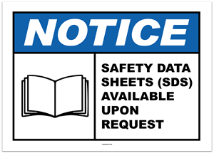 Notice Safety Data Sheets (SDS) Available Upon Request Sticker