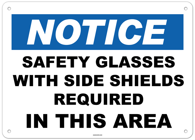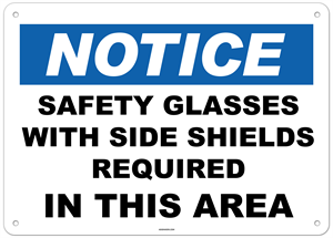 Notice Safety Glasses With Side Shields Required In This Area Sign