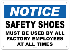 Notice Safety Shoes Must Be Used by All Factory Employees At All Times Sign