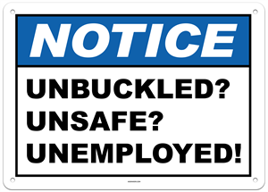 Notice Unbuckled Unsafe Unemployed Forklift Sign