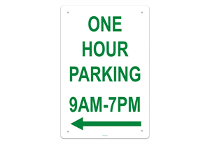 One Hour Parking 9AM-7PM Left Sign