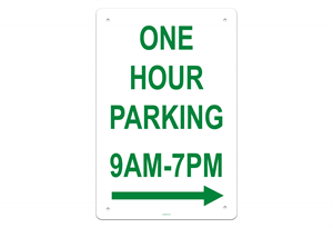 One Hour Parking 9AM-7PM Right Sign