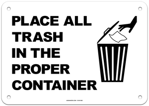 Place All Trash in the Proper Container Sign