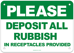 Please Deposit All Rubbish Sign