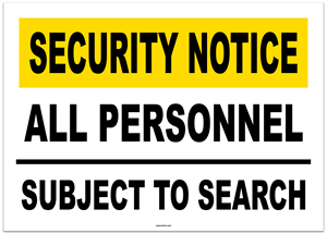 Security Notice All Personnel Subject to Search Sticker