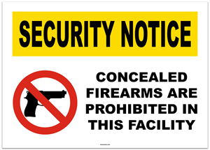 Security Notice Concealed Firearms Prohibited Sticker